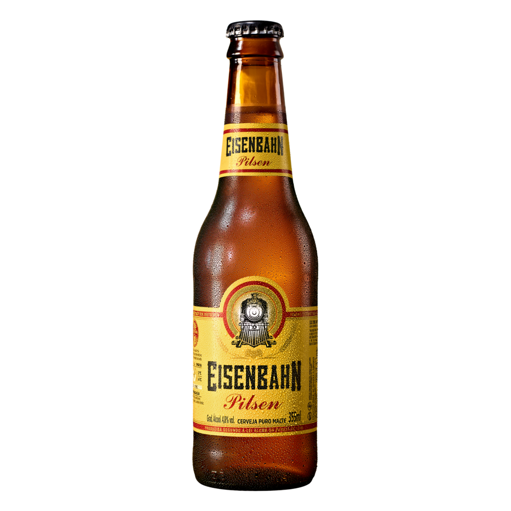 A Eisenbahn Pilsen Long Neck 355ml é uma cerveja puro malte leve e com amargor na medida certa, ideal para ser apreciada bem gelada. De baixa fermentação e com teor alcoólico de 4,84%, a Eisenbahn Pilsen é o rótulo mais vendido da marca no Brasil. A cerveja possui cor dourada, aromas de malte e lúpulo e oferece um equilíbrio excelente entre o amargor e o doce. Harmonize a sua Eisenbahn Pilsen com frutos do mar, peixes e queijos. Fundada em Blumenau, a Eisenbahn é uma cerveja brasileira que tem alma alemã. Todas as cervejas produzidas pela fábrica seguem à risca a Lei Alemã da Pureza.